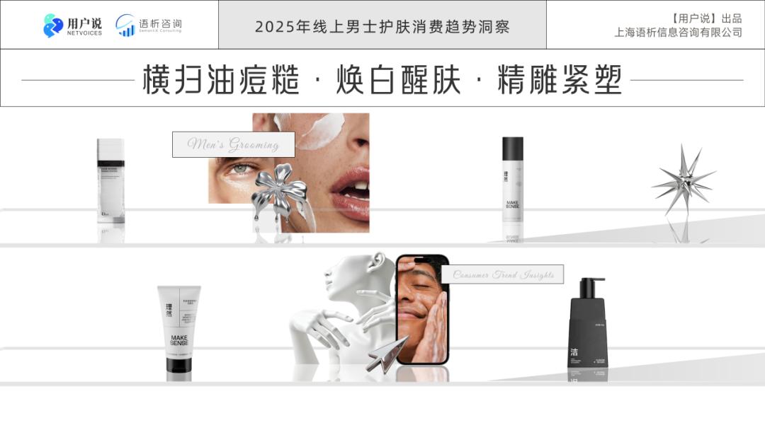 为深入解析这片持续扩容却尚未饱和的蓝海市场,用户说聚焦男士护肤赛道,推出《2025年线上男士护肤消费趋势洞察》报告。我们以消费行为数据为基石,关键词追踪为脉络,试图描摹出新世代男性护肤消费者的真实画像,并系统解析其从“认知—决策—使用—复购”全链路的消费逻辑。