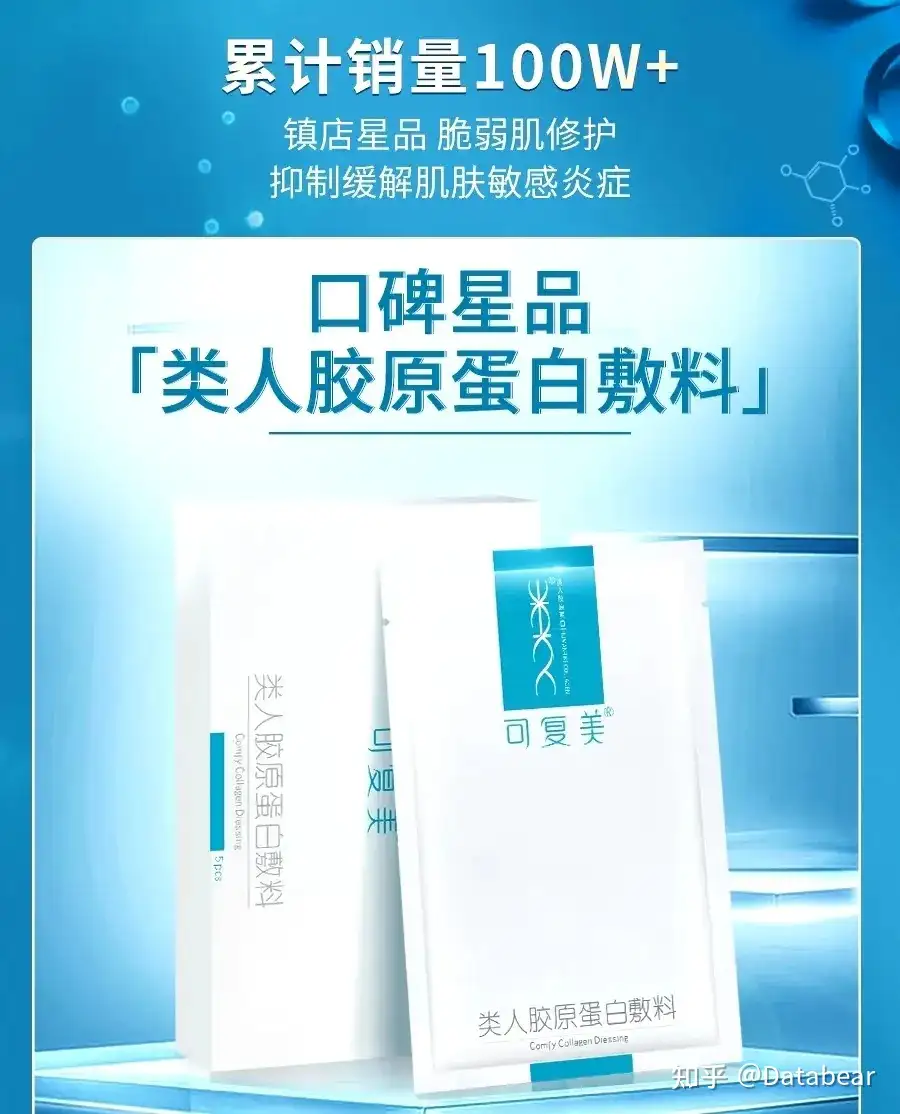 敷尔佳早年便凭借医用敷料迅速崛起,一款医用透明质酸钠修复贴作为国内第一批获准上市的透明质酸钠成分II类医用敷料贴类产品,为敷尔佳奠定了“械字号”美容产品市场领先地位,后于2022年上新的II类医用胶原蛋白敷料更是成功搭建起了敷尔佳“械字号”领域的透明质酸钠与胶原蛋白双轮驱动策略,进一步提升敷尔佳医用敷料市场影响力。