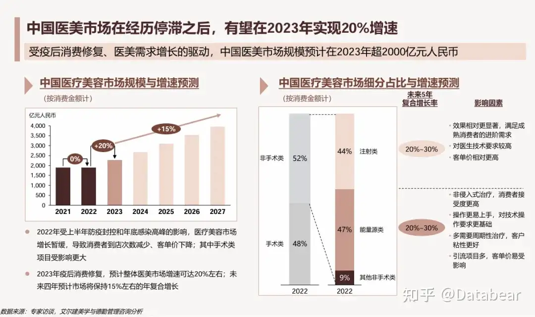 另德勤与艾尔建美学联合发布的《2023年中国医美行业洞察报告》也指出,2022年中国医美市场规模已超1500亿元,其中非手术类轻医美占据52%的市场份额,其中括注射类占44%、能量源类占47%、其他非手术类占9%。