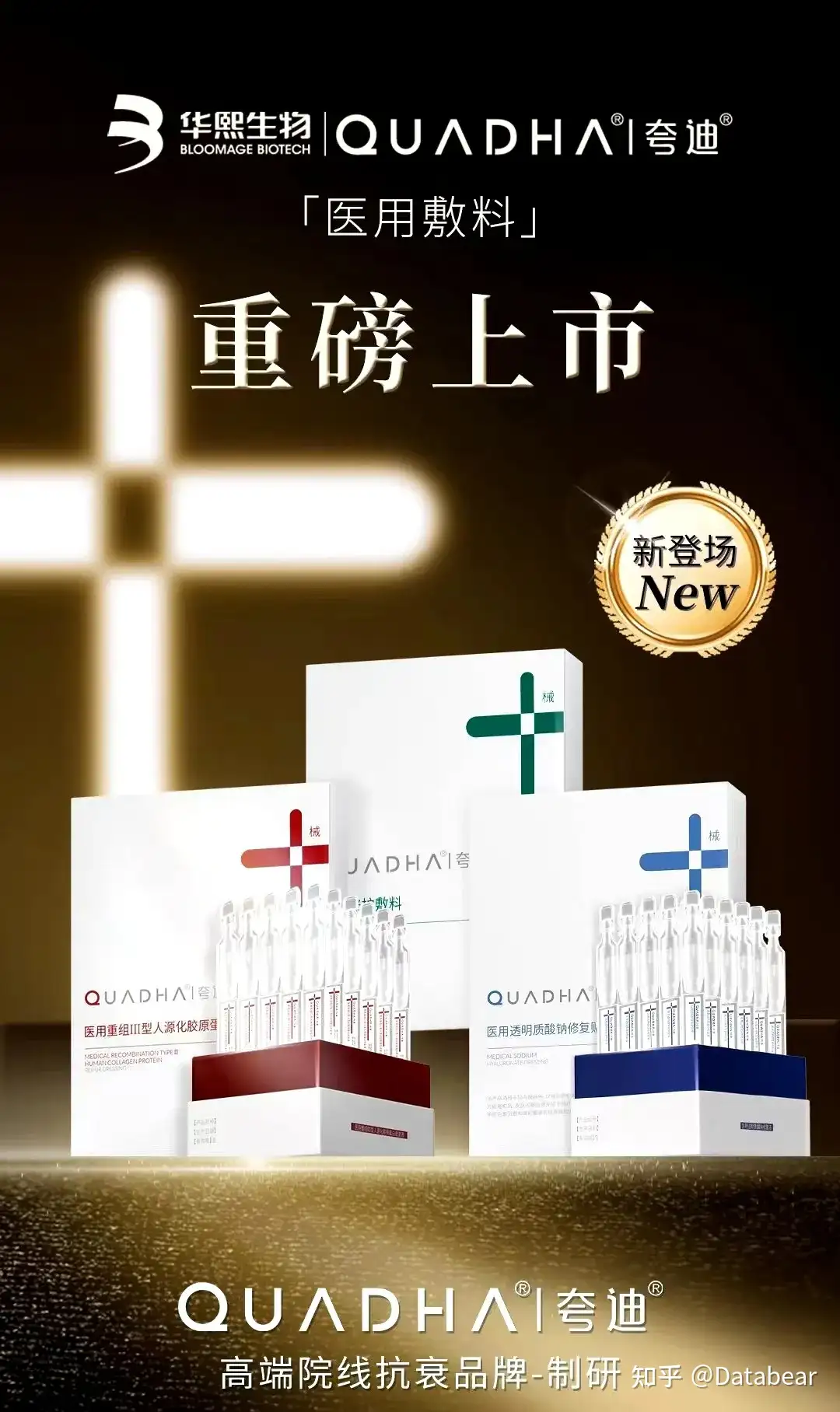 值得一提的是,华熙生物旗下高端抗老品牌夸迪9月20日推出的5款械字号医用敷料,涵盖了“绿十字系列”皮肤修护敷料、“蓝十字系列”透明质酸钠修复贴与修复液,以及“红十字系列”胶原蛋白修复贴与修复液,这些创新产品进一步强化了其在医美市场的领先地位。