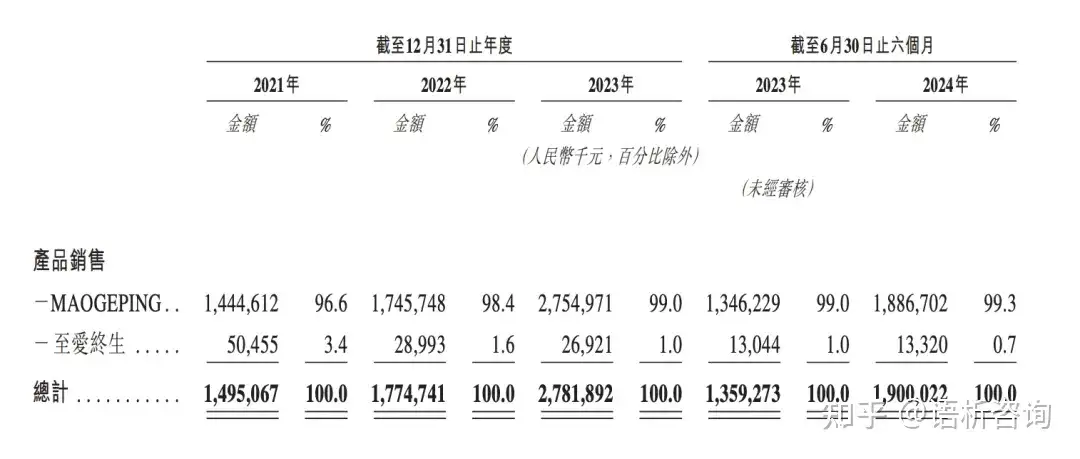 招股书还显示,毛戈平旗下主要包括以主打高端市场的旗舰品牌MAOGEPING和大众化品牌“至爱终生”。其中,MAOGEPING撑起了毛戈平公司营收重要支柱,2023年销售收入在全公司总营收占比高达99%。