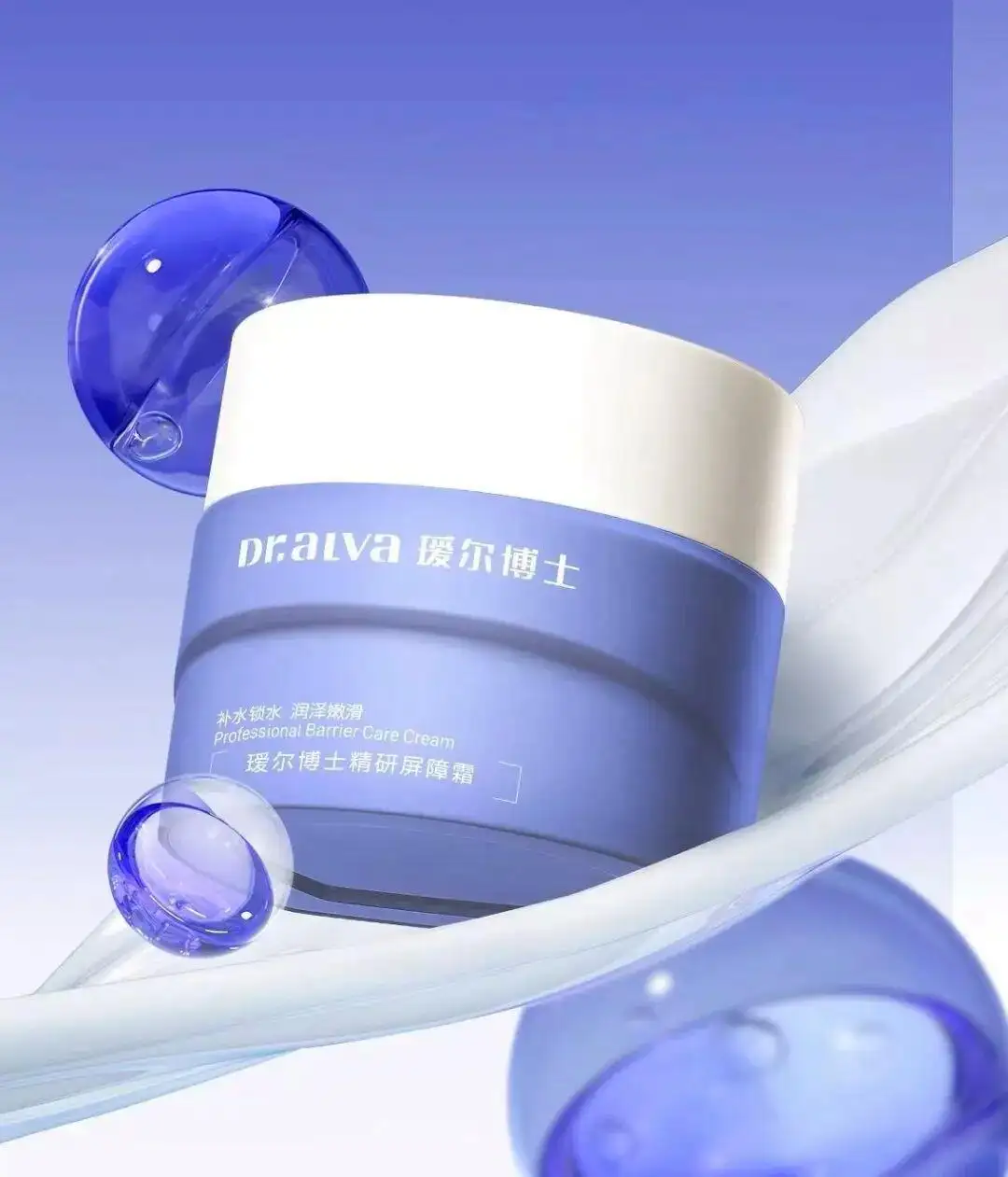 瑷尔博士精研屏障霜以“分层保湿”为核心理念,先利用小分子水解透明质酸钠的渗透性进行肌肤深层补水,以改善干燥状态;随后通过角鲨烷与牛油果树果脂模拟天然皮脂膜,形成锁水屏障,减少水分蒸发;最后借助泛醇调理肌肤,促进脂质合成,从而增强皮肤自身的保水能力。