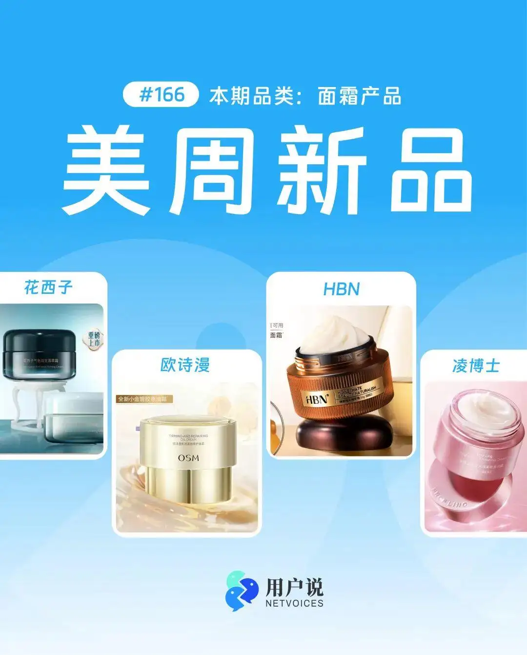 本周,用户说为您盘点了九款面霜新品,并依据其核心功能分为抗老紧致、美白提亮以及保湿修护。