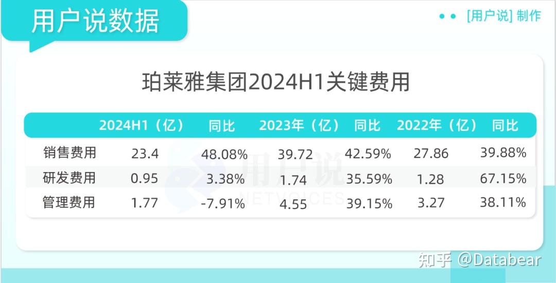 销售费用向来是美妆领域的重头戏。珀莱雅在2024年上半年的销售费用为23.4亿元,预计全年销售费用不低于45亿元,相比2023年上半年的15.8亿元,上涨48.1%。但是,值得一提的是,公司的管理费用显著下降,和同期相比下降7.91%,这一变化表明公司在成本控制方面取得了显著成效。然而,仔细分析财务报告可以发现,这种费用的削减主要是因为减少了股份支付的费用。尽管这有助于短期内改善财务表现,但从长远来看,这种做法可能会带来负面效应,尤其是对人力资源的影响。