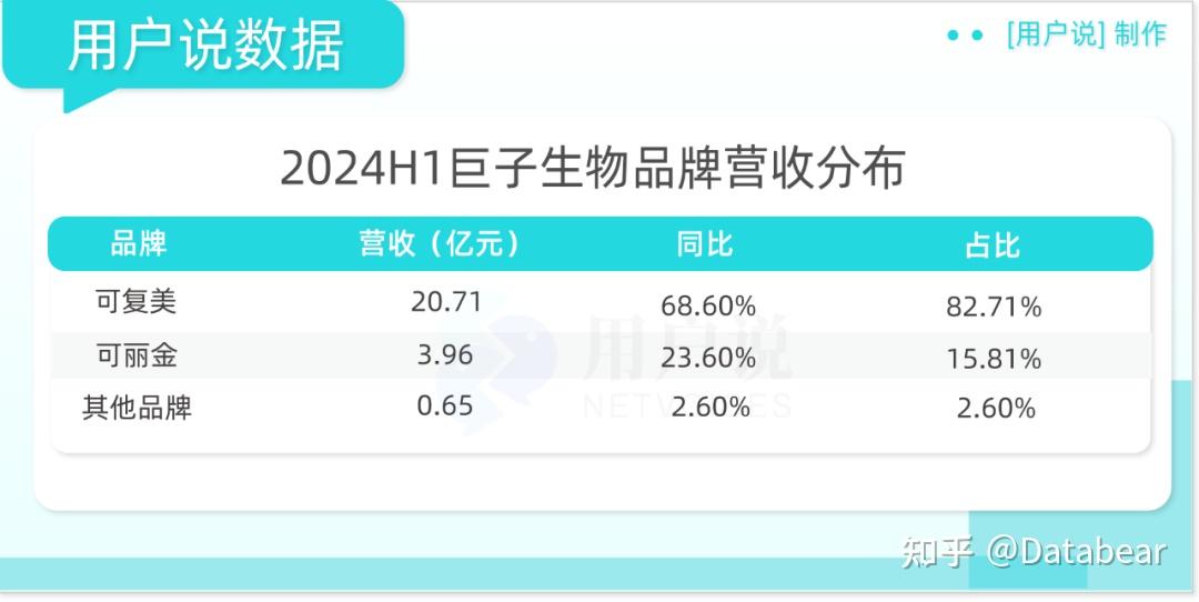 而在功效性护肤品和医用敷料两大品类方向上,可丽金和可复美无疑是主要贡献品牌。以最新半年报来看,今年上半年可复美实现总收入20.71亿元,同比去年增长68.6%;可丽金实现总收入3.96亿元,同比去年增长23.6%。其中,值得注意的是,对比2022年-2024年上半年增速来看,可复美的增速分别达到79.7%、72.9%、68.6%,虽仍在高位,但已呈现放缓趋势。