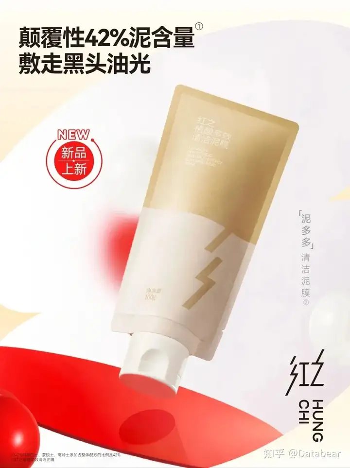 除了达到成分保鲜,避免污染的目的,也有针对不浪费产品余量而进行的包装创新。例如在清洁泥膜上,最常见的普通大罐泥膜在开封后容易造成产品污染、滋生细菌,而管状包装泥膜由于塑料包装较硬,容易出现用到最后余量无法挤出而浪费的情况,【红之泥多多清洁泥膜】在先有的大罐泥膜、管状泥膜都有不足之处的情况下,采用柔软的包装袋材质,并独创了撕拉口设计,在使用后期,膏体挤压困难时,可以直接撕开包装,将剩余膏体挤压干净,不浪费余量,减塑环保。