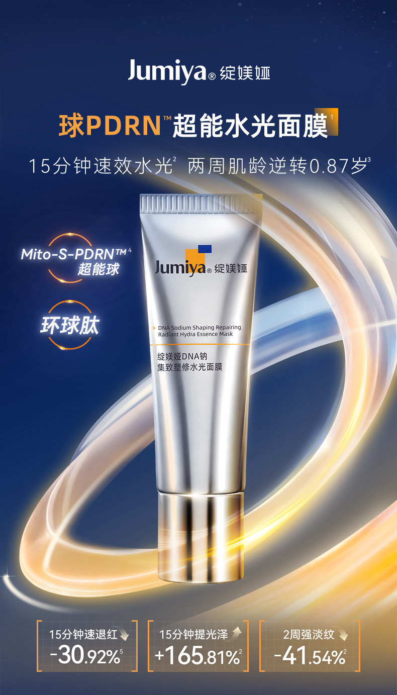 绽媄娅此款面膜的研发特色在于构建了以“Mito-S-PDRN超能球”为核心的靶向递送系统。其专利球PDRN粒径约121nm,有利于经皮吸收;创新之处在于将PDRN与“线粒体能量球肽”相结合,理论上可协同作用于细胞能量代谢与修护,旨在提升肌肤活力。