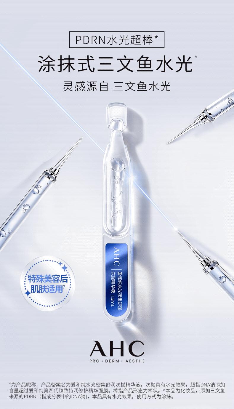 A.H.C此款产品的研发亮点在于对PDRN原料进行了精细化的处理与应用。其特色是采用了“球状PDRN”技术,通过将大分子PDRN封装成高密度微球(1ml含3.7X109个),不仅提升了成分稳定性,更可能利用微球的滚动效应促进透皮吸收。每个微球内含明确数量的PDRN分子(约548万),旨在实现剂量的精准控制与高效递送。