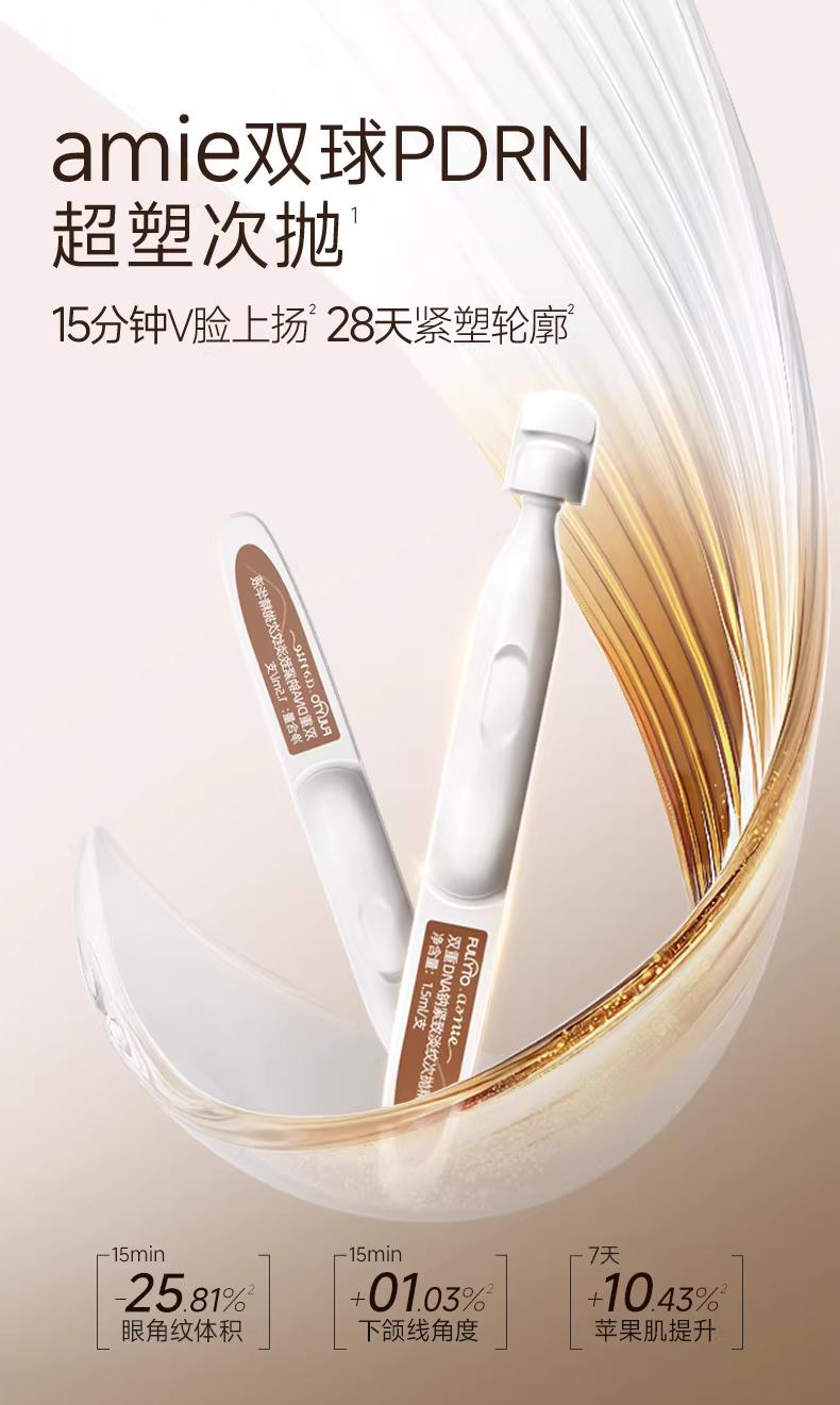 这种“即时+持续”的递送方案旨在协同增效。配方上,其将双核PDRN与6D胶原、秩序肽及专利肽·A淡纹素(弹簧肽与植物A醇复合物)进行复配,多通路靶向胶原再生与肌肤紧致,10项专利技术为其功效提供了系统性支持。