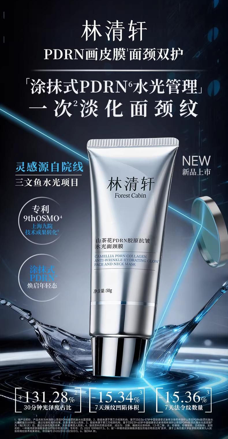林清轩此款产品的研发特色在于其创新的剂型设计与多维度活性物复配。核心技术“精华转膜技术”使产品在涂抹后能于肌肤表面形成一层透气膜体,这有助于局部封包促渗,提升PDRN(依托Bio-Hyper Fuse生物超导渗透技术)及其他水溶性成分(如8重玻尿酸)的吸收效率。