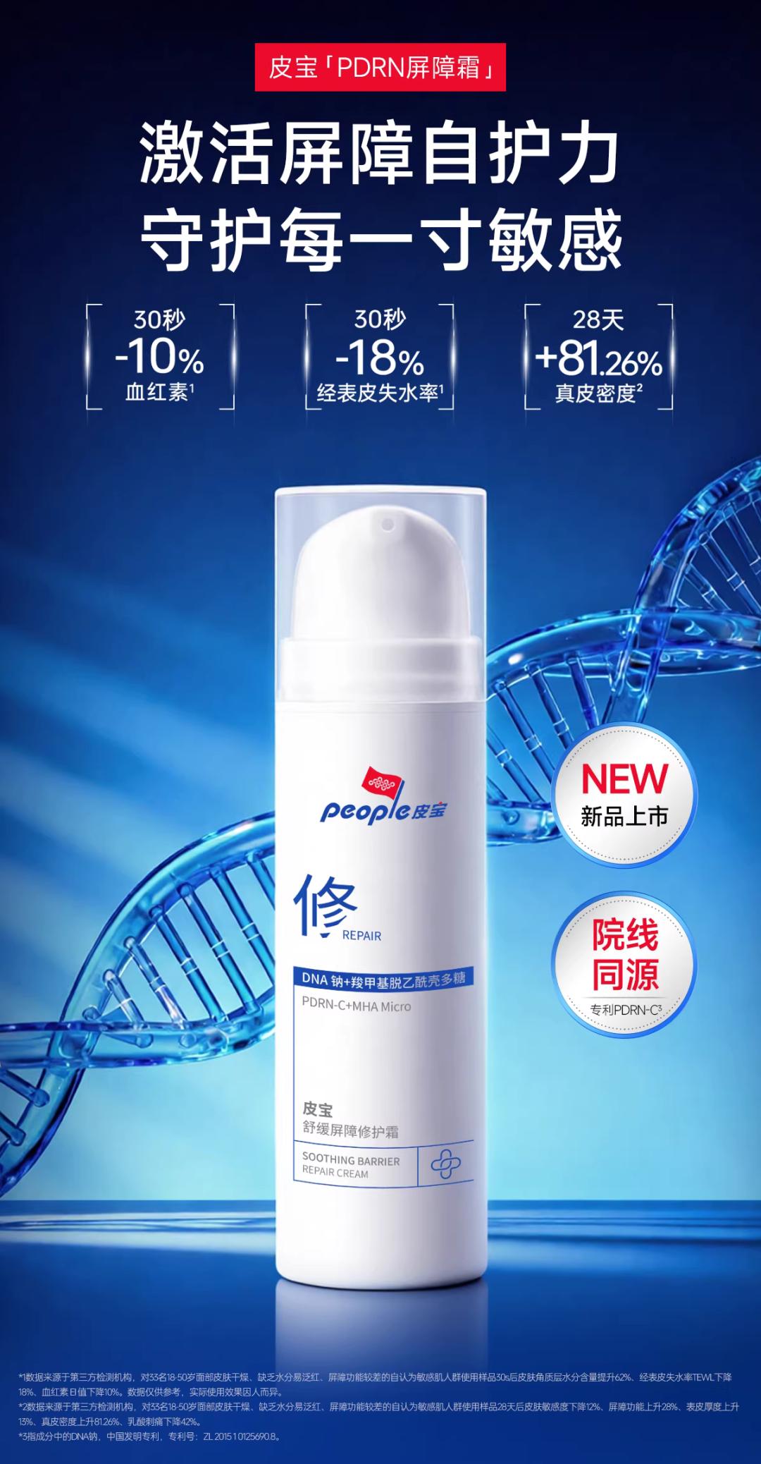 皮宝此款修护霜的研发特色在于构建了以“PDRN-栀子果提取物”为核心的生物信号修复轴,并系统性地整合了多重屏障修护路径。其通过PDRN(激活核)提供细胞层级修护信号,协同栀子果提取物(修护核)增强内在抵御力。