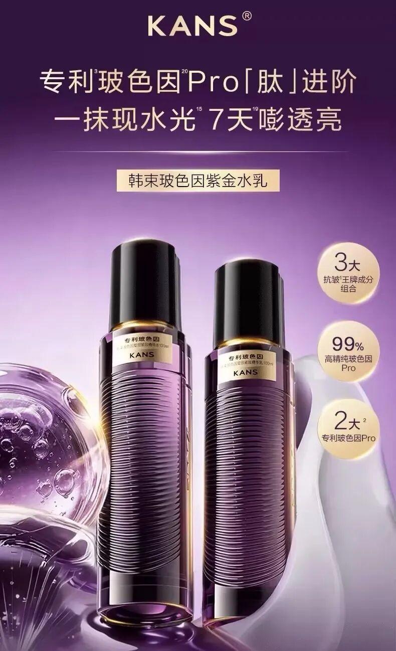 韩束紫金水乳的突围之处在于其通过专利玻色因Pro,协同水飞蓟素来强化抗氧化防护,从源头促进胶原蛋白生成,并通过水乳分工协同构建了一套完整的抗老矩阵。