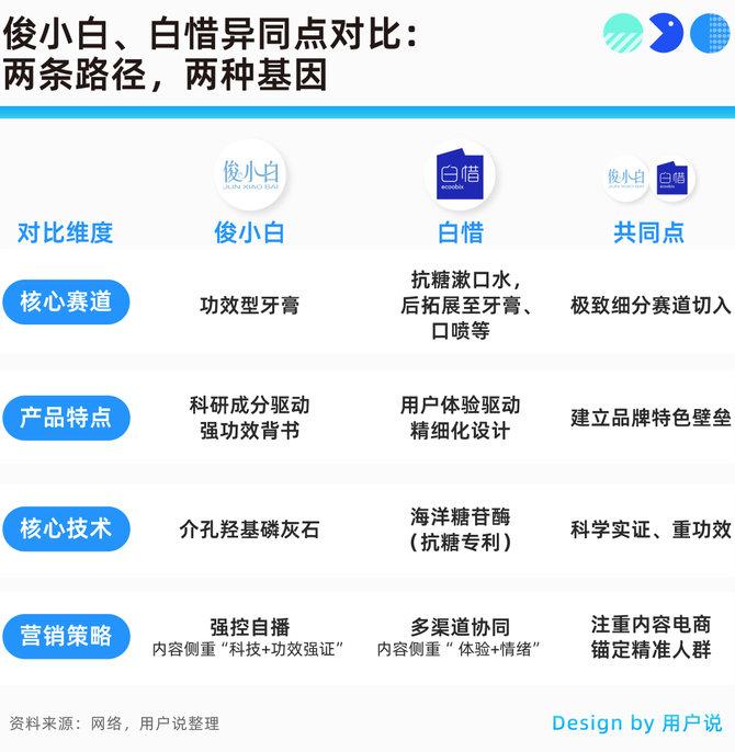 当然,两大品牌背后也暗含隐忧。俊小白目前仍以羟基磷灰石牙膏为大单品驱动增长,使得品牌的抗风险能力较低;白惜的“抗糖”理念深入人心,但科研叙事能力较为薄弱。