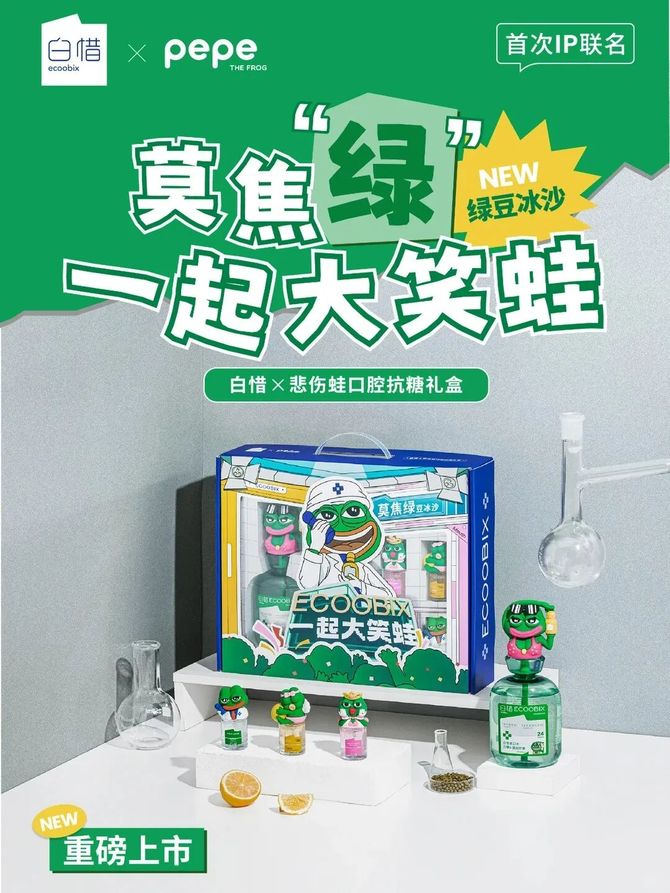 与此同时,白惜还曾联名悲伤蛙推出绿豆冰沙口味漱口水&口喷,用IP联名撬动年轻人圈层,并且先后官宣姜妍、张杰为品牌形象代言人,借国民明星热度扩大品牌曝光及影响力,这些推广模式皆为品牌的长期形象打造添砖加瓦。
