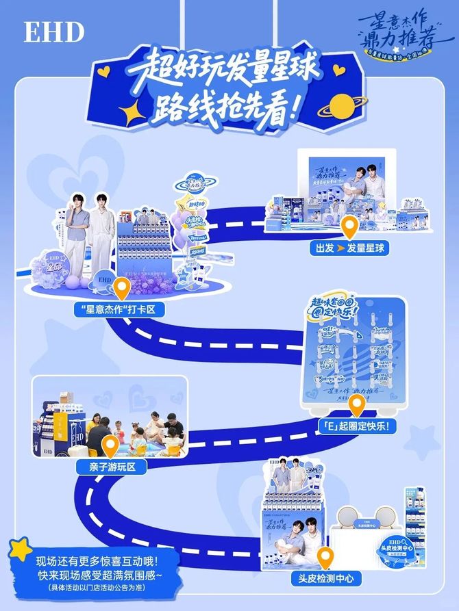例如官宣沈梦辰期间同步投放北京、广州、上海、杭州、长沙五大城市宣传大屏;与黄星、邱鼎杰联动发起「发量星球能量站」全国快闪,设置专业头皮检测点,现场为用户定制头皮护理方案;联动三福邀请达人小周-Z-、鱼仔担任“一日店长”,点燃品牌线上+线下热度——两天时间小红书打卡话题参与量超1W+。