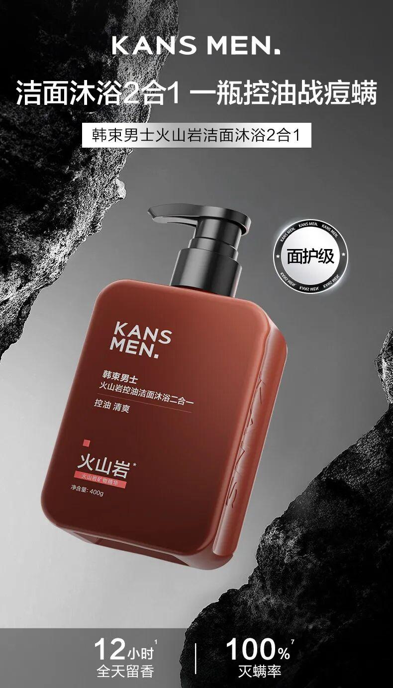 1.韩束男士火山岩洁面沐浴露二合一