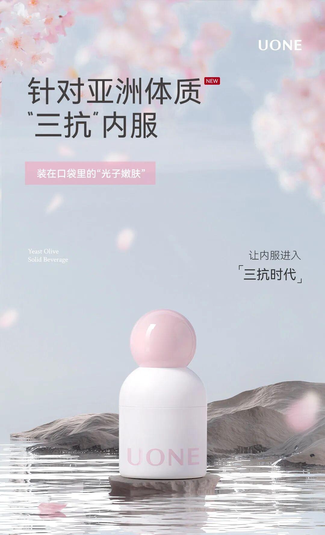 UONE以口服粉剂形态破局内服美容,直击传统产品“坚持难、吞服难、场景受限”痛点,新品「小粉帽」专为亚洲人研发,针对高糖饮食、精制碳水、作息紊乱引发的面黄、肤色不均、脸色晦暗等问题,打造“抗氧化、抗糖化、抗羰基化”三抗闭环养护方案,樱花莓果味酸甜好入口,让每日养护的过程如吃零食般轻松。