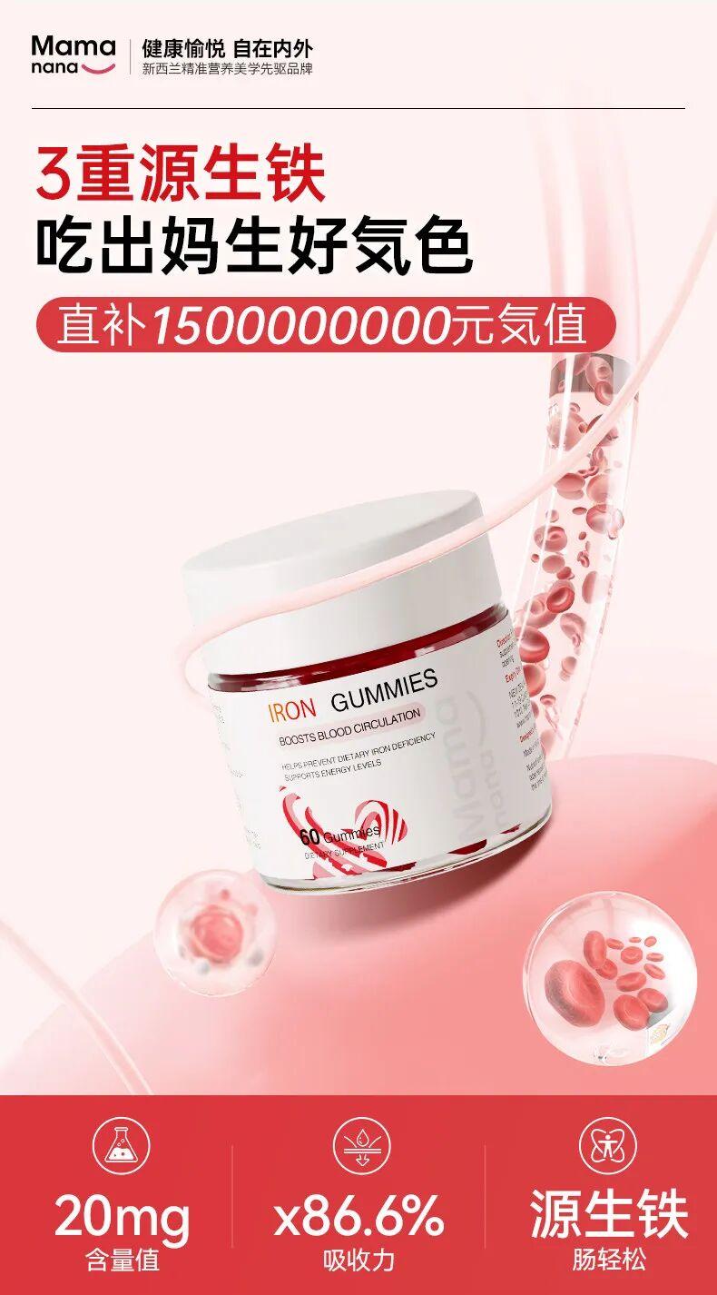 Mama&nana元気软糖的核心差异,在于以3重同源铁重新定义温和补铁。不同于传统铁剂易刺激肠胃,产品复配内源铁、血红素、血蛋白肽,贴近人体天然铁存在形式,对肠胃更亲和、无负担。