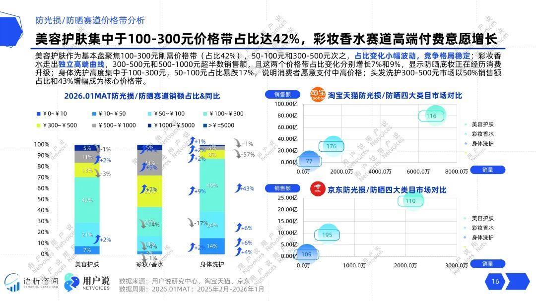 价格带分析揭示了不同品类的消费心态分野。美容护肤作为基本盘,100-300元刚需价格带占据42%份额,格局稳定。